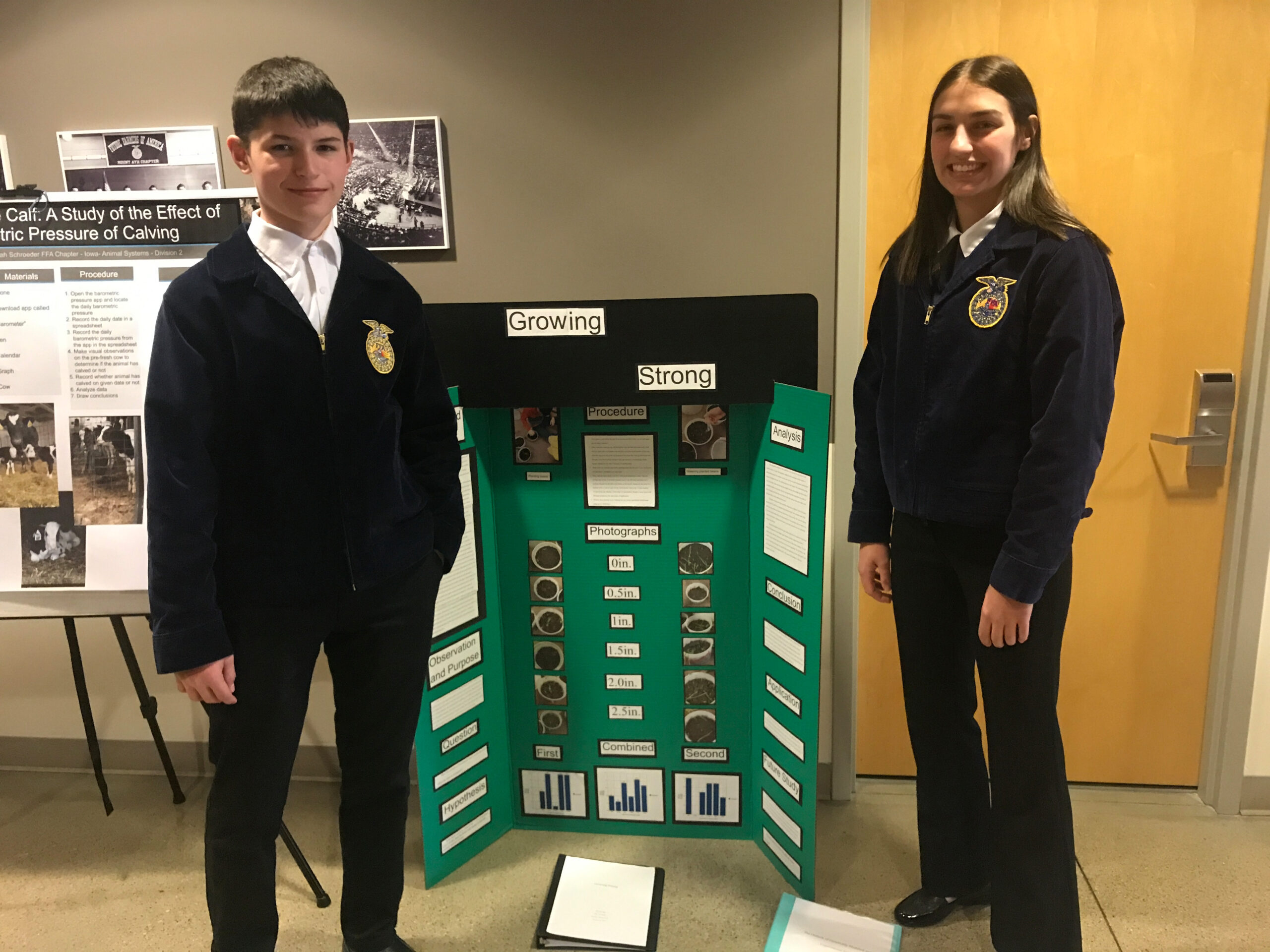 Ben Woodall also entered a project in the State Agriscience Fair, which he called Growing Strong. For his project, he found out how much moisture is needed for a soybean to emerge. The event itself was a learning experience, not just the project. “I got to see some other projects in my category and they were very interesting including things about how anhydrous ammonia affects earthworms and if they still make holes in the soil,” he said. Ben got third place in his category.