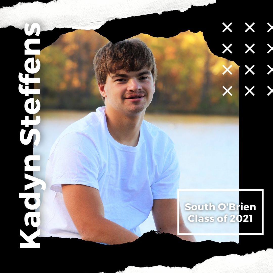 Kadyn Steffens is the son of Linda and Shon Steffens. Kadyn has been involved in FCA, football, basketball, basketball manager, and baseball. He was on the honor roll. He loves to hang out with his family and friends. His favorite memory was playing varsity baseball with his older brother Taylor. Some of his hobbies are hunting, walking in the woods, and being outdoors. His future plan is to go to either BVU or Simpson college to major in exercise science and play baseball. Some advice he would give is to work harder than the person in front of you and never stop trying.