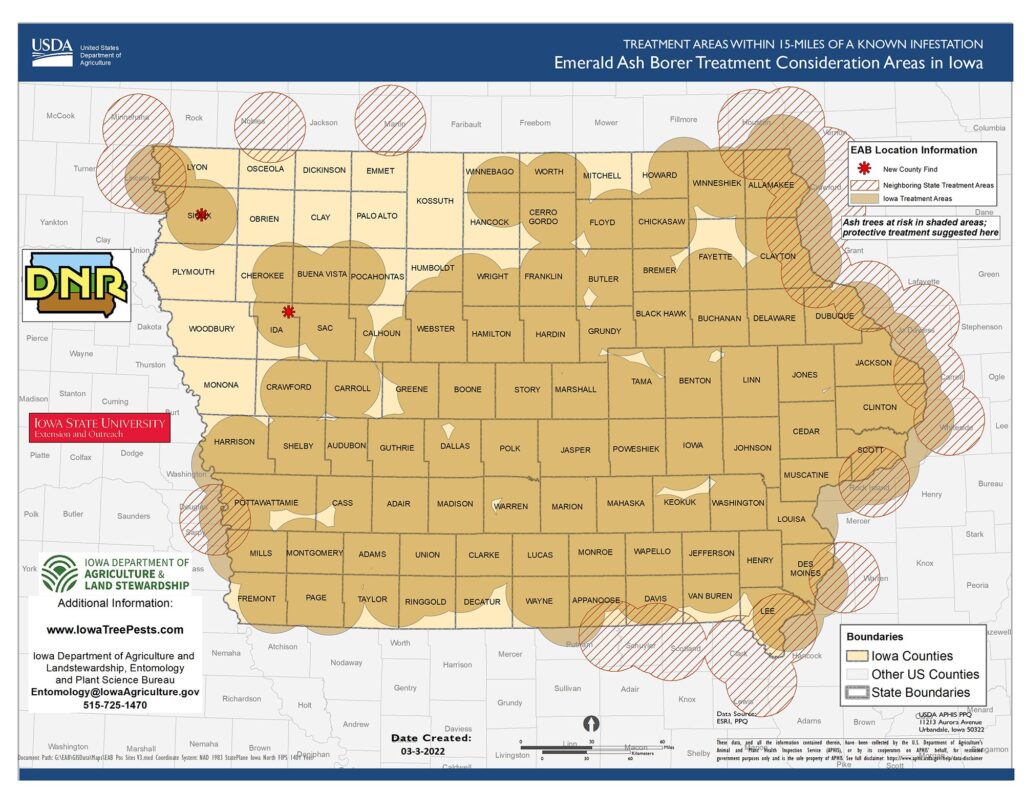 Additional information on EAB, including a county detection map, can be found at iowatreepests.com.