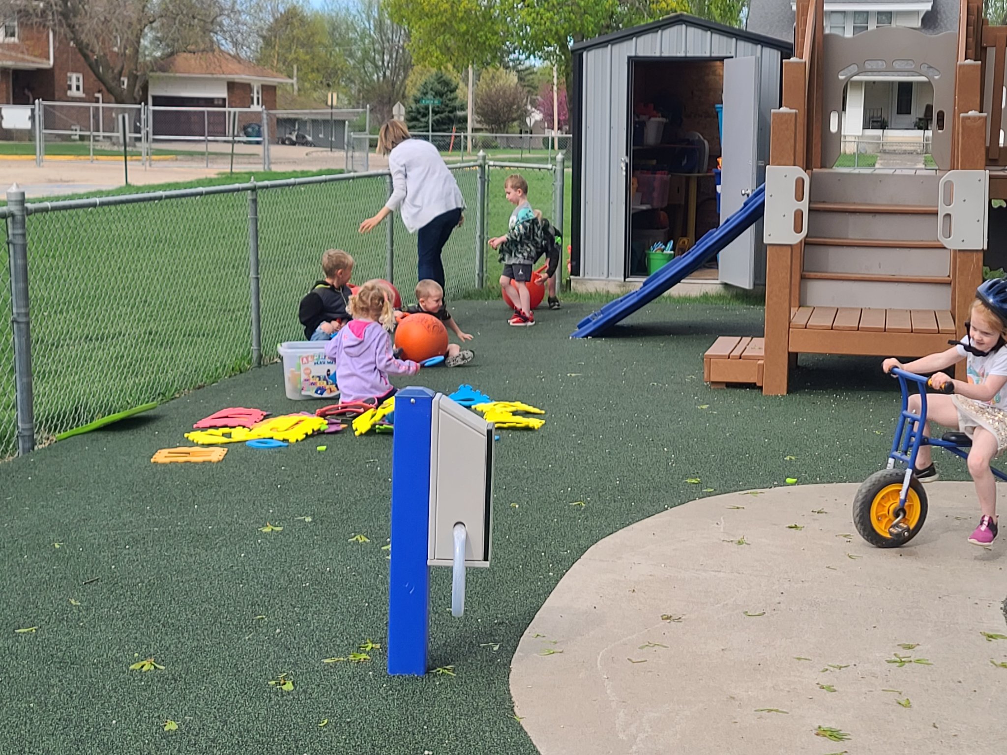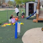 Everyone is enjoying the nice weather while playing on the preschool playground….
