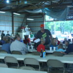 About a half dozen planes flew in for breakfast. The crowd of local generous guests started to fill the large hangar around 8:30 and kept coming until after 10:00 with service until 11:00.