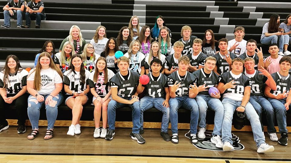 Shout out to the SENIORS! They’ve got their game faces on, ready for tonight’s football game against the Sheldon Orabs. And they were crowned CHAMPIONS of the back to school dodgeball tournament today! #SilverAndBlackPack #WolverineWay #classof2023