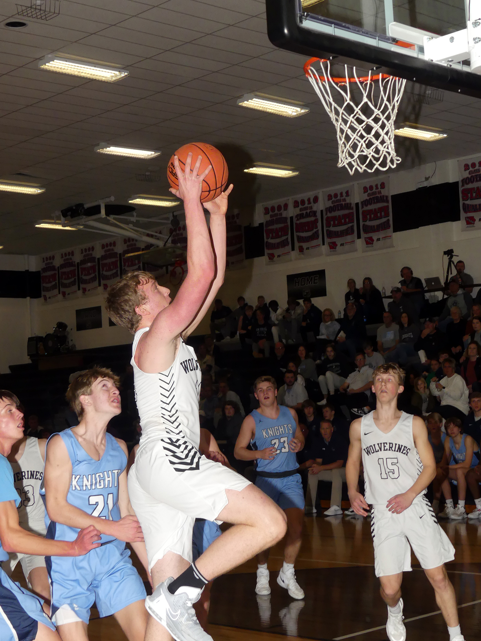 Leading scorer for the Wolverines was David Bottjen with 18 points. Boston Riedemann scored 12 points, Ben Woodall 10, Hudson Oolman six, Willie Conley four, Sawyer Honkomp three and Dain Moermond and Derek Paulsen two apiece. The team’s 11 assists included four from Bottjen, three from Woodall and two from Riedemann.