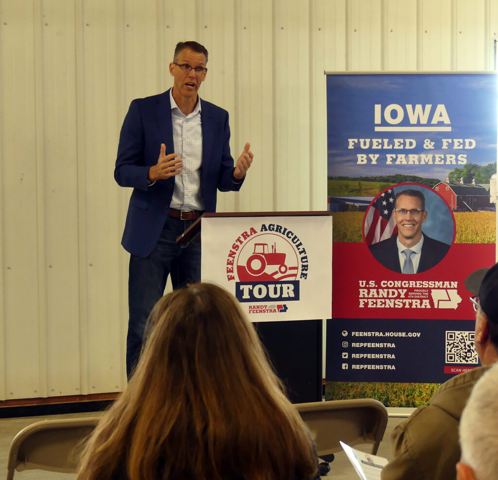 U.S. Rep. Randy Feenstra (R-Hull) hosted a town hall with local farmers, producers, and constituents March 15 to discuss the upcoming Farm Bill and other issues. A total of 24 people attended the event hosted by Corey Rozenboom at his Alpha Ag facility southwest of Sanborn.