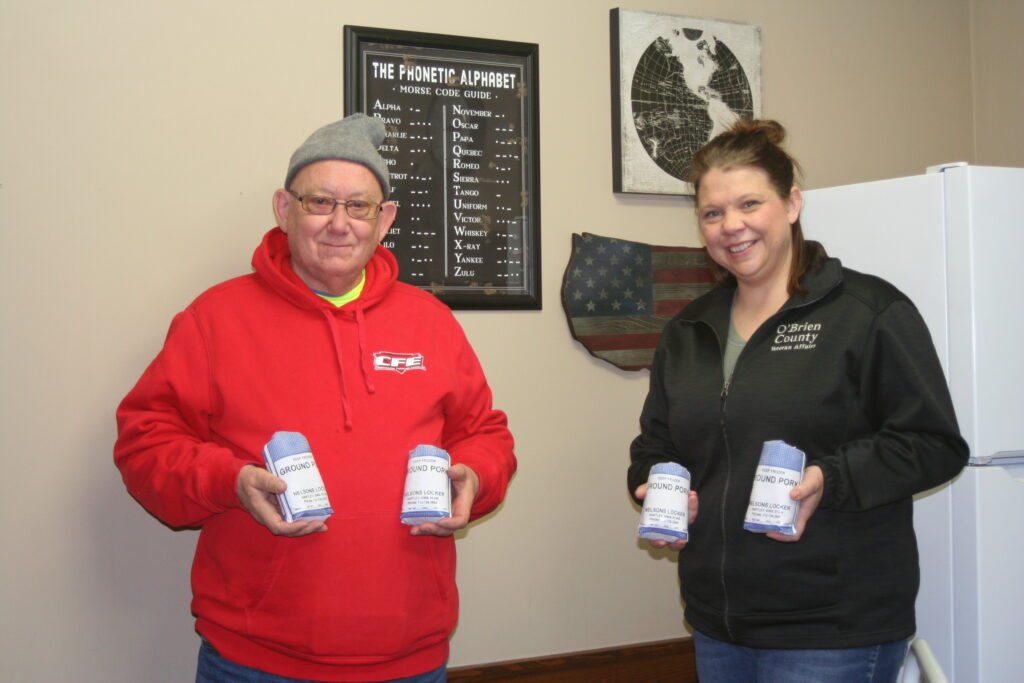 The Pork in the Pantry Program assists local food pantries through the County Pork Producer organizations. O’Brien County Pork Producers teamed up with the Food Bank at Trinity United Church of Christ in Hartley and the O’Brien County Veterans Affairs Food Pantries. The Iowa Pork Producers Association provides a special program. It will reimburse the County organization up to $1,000 for pork products donated. Nelson Locker in Hartley supplied this program with bacon and ground pork.