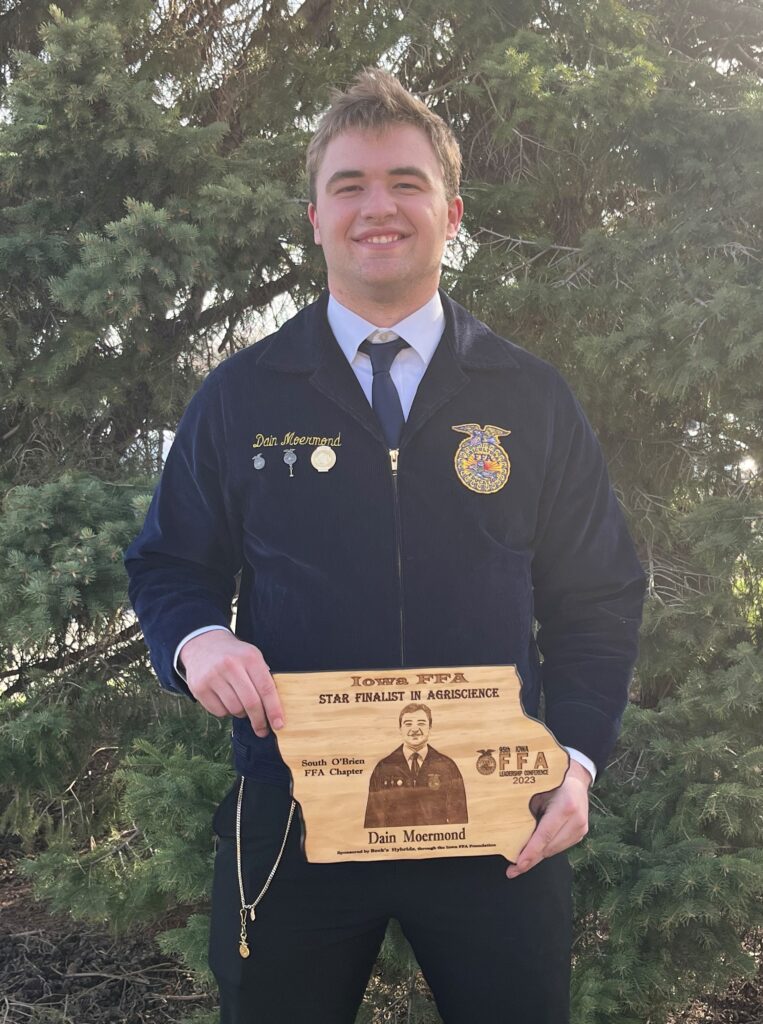 On April 18, 2023, the Iowa FFA State Convention was held at Iowa State University. During the convention, former South O’Brien FFA chapter president, Dain Moermond, competed as a finalist in the State FFA Star in Agriscience competition.