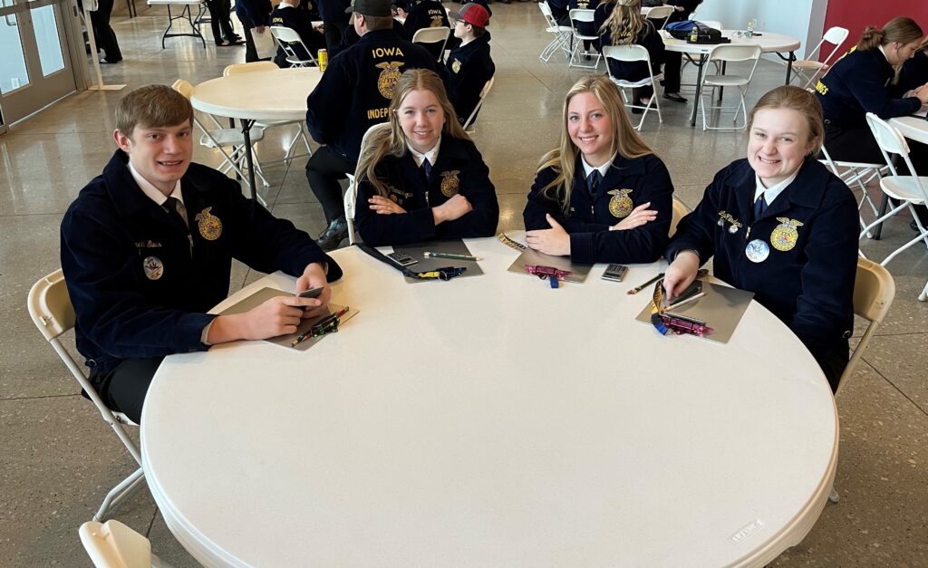 Evans said “I learned a lot about the business side of farming and how being financially independent can be really beneficial in life.” Brett also added, “It wasn’t just the competition that was fun, but the activities outside the competition–exploring the career show, eating at Hickory Park, and walking around inside the Iowa State football stadium–were also really enjoyable.” .