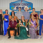 The 2023 O’Brien County Fair Royalty were crowned Monday night at the Coronation Ceremony. They are, seated from left, King Jayson Stamer, Queen Ellen Hunt and Princess Kourtney Dekker. The King and Queen candidates also included, standing from left, Makenna Hofmeyer, Whitney Einck, Morgan Grooters, Bryce Dodge, Justice Frerk, Samantha Wilbur and Claire Wagner.