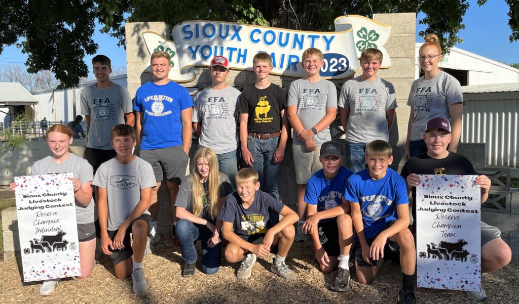 The South O’Brien FFA Livestock Judging Team kicked off its judging season by having three senior teams and one junior team compete in the Sioux County Fair Livestock Judging Contest on July 12th.