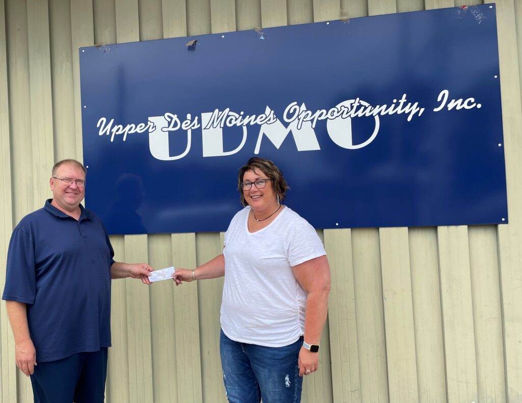 Total Outdoorsmen of NW Iowa donated money to four UDMO Food Pantries; Sibley, Primghar, Spirit Lake, and Spencer with proceeds from their 2022 banquet. Pictured is Chris Sickelka of Total Outdoorsmen presenting checks to the Primghar, Spirit Lake, and Sibley UDMO staff.