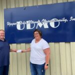 Total Outdoorsmen of NW Iowa donated money to four UDMO Food Pantries; Sibley, Primghar, Spirit Lake, and Spencer with proceeds from their 2022 banquet. Pictured is Chris Sickelka of Total Outdoorsmen presenting checks to the Primghar, Spirit Lake, and Sibley UDMO staff.