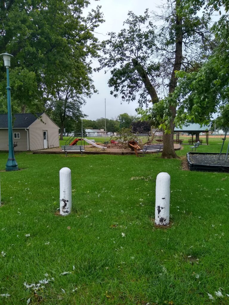 Piles of hail stones still laid in the grass on the northwest corner of the high school parking lot and in the street gutter north of the school.