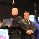 McQueen was one of 34 cadets in the 310th graduating class and completed the academy’s rigorous 16-week training program that consisted of coursework in policing communications, criminal law, physical fitness, and emergency response. He also received training in patrol procedures, investigations, and tactical and administrative skills. Attorney General Bird welcomed the graduates onstage as they were presented with their diplomas by ILEA Director Brady Carney.