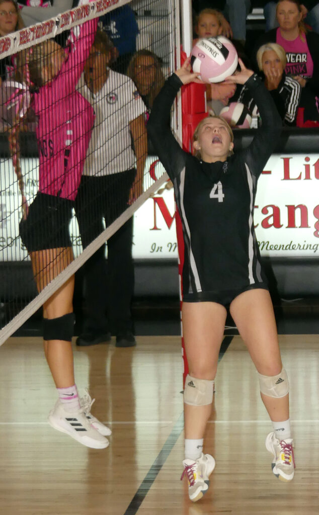 George-Little Rock’s Carly Koerselman served the Mustangs to an early lead in set one and her serves later in the set propelled the team to victory. She was at it again in set number two, staking her team to a late lead of seven points. Then in the third set it was Koerselman’s serves giving her team to the early advantage. For the night the Mustang junior was 26-of-29 serving with 14 ace serves.