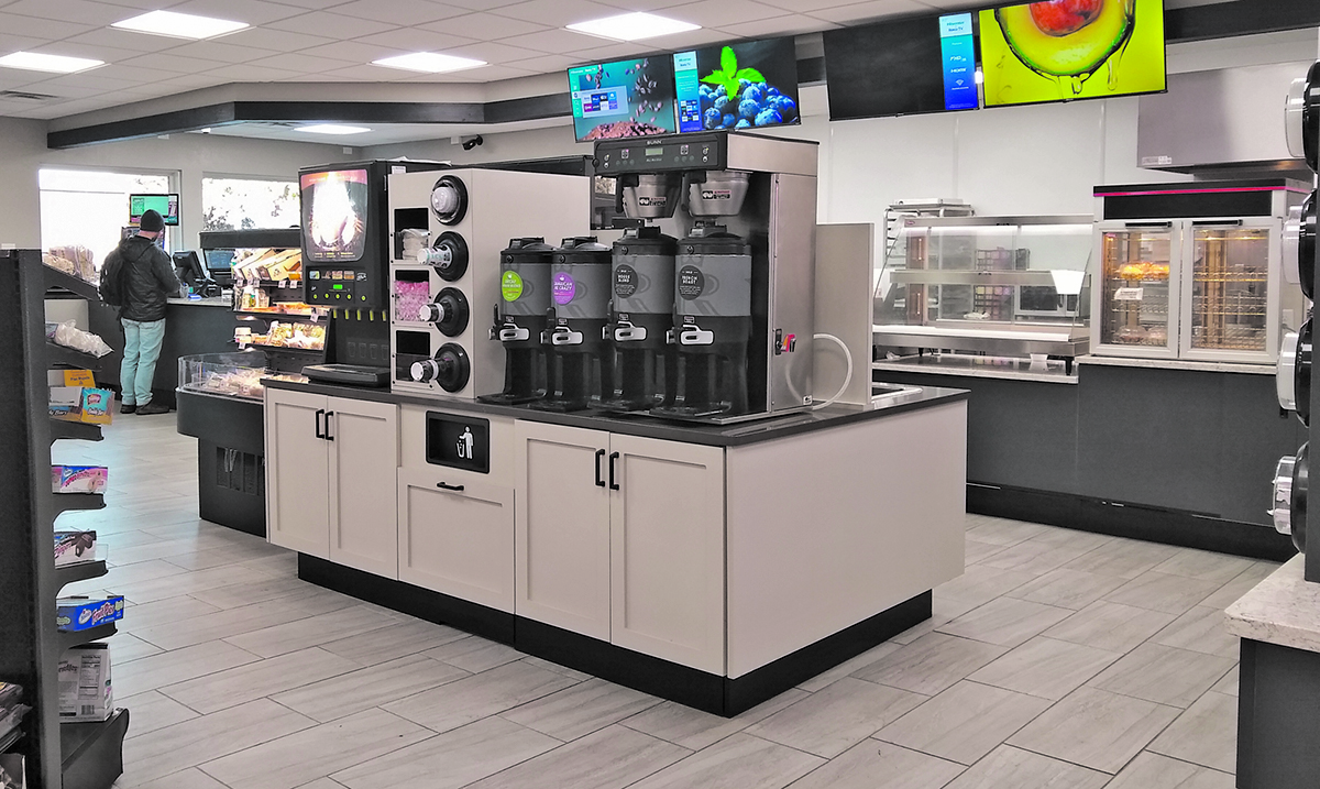 A specialty coffee bar has been added. A brewer is on the way to make preparing the choices easier for staff. A few additional grocery items have also been added to the increased cooler and shelf space.