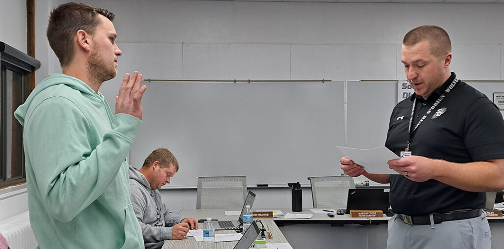 Returning board members are Beth Sibernaller-Woodall, John Beck and Rich Rausch. Newly elected board member is Dallas Jalas. Those elected members present on Monday were sworn into the office. Officers remained the same. Gina Paulsen, president and John Beck, Vice President. Both were sworn into office following their respective votes.