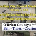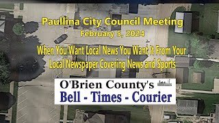 Video of Paullina City Council Meeting February 5, 2024 belltimescourier.com Posted on February 7, 2024 by richard radtkeFebruary 7, 2024 Treasurer resigned Nov. 20 of 2023, Council just informed by Councilperson Carol Honkomp
