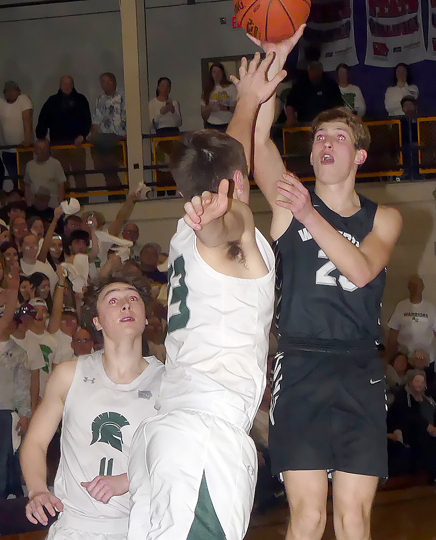 Leading 46-44 on a three ball from David Bottjen with 1:50 left in regulation, the Wolverines forced two missed shots but each time North Union got the offensive rebound. The Warriors’ Aidan Lofstrom laid the second rebound back in to tie the game at the seven second mark. Following a time out, South O’Brien got an open corner jumper from Jaden Kreber but the shot would not go in. North Union never trailed in overtime and its lead was 54-48 with a little over a minute left.