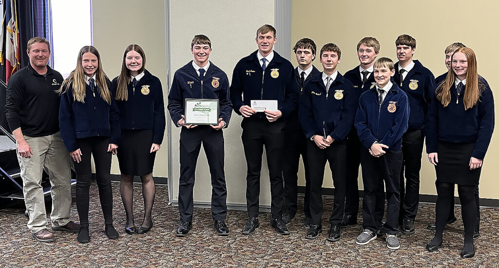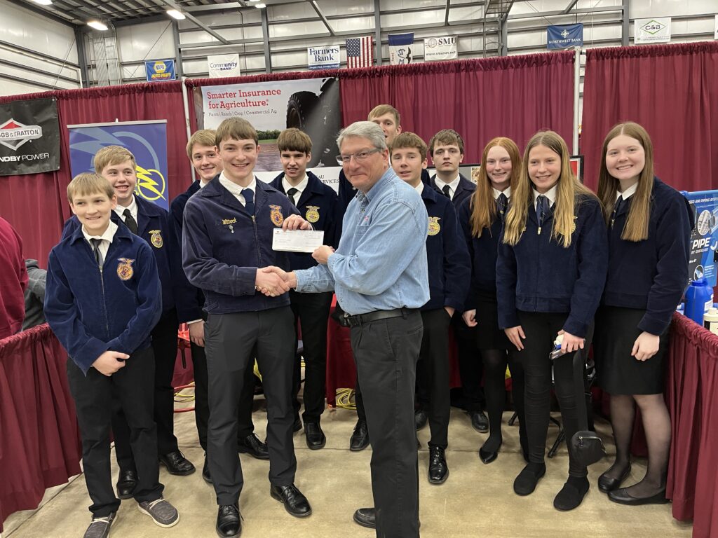 Also at the Ag Outlook, the chapter was presented a $100 dollar check by Troy Leininger from the Clay County Farm Bureau for helping with Grandpa’s Barn at the Clay County Fair.