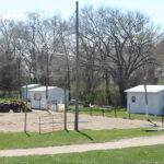Fund-raising effort in 2023 are covering this years improvements. New fencing and posts are being installed. The rotted wooden posts were removed and new steel posts were put in place on Saturday April 20. The old high-tinsel wire fencing is replaced with welded pipe fencing sections that are staged at the arena. Volunteers are putting them up as time and weather permit. Frederick’s Welding of Marcus, Iowa built the fence sections. Gary Lange of Sutherland volunteers his time to work the arena. His time and effort is free every time.