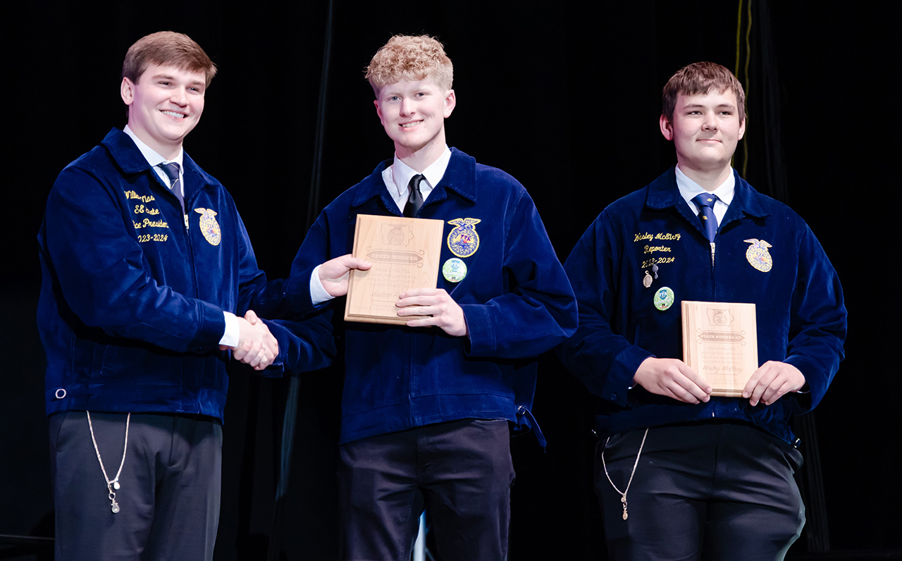 Justice Frerk of the South O’Brien FFA Chapter was the first-place winner in Ag Mechanics Repair and Maintenance placement, sponsored through the Iowa FFA Foundation Gold Standard Partners. Justice has put in over 1,100 hours as a diesel technician for John Deere Agrivision in Paullina. He began his SAE in the wash bay and has since worked his way up to performing maintenance on nearly every piece of equipment that comes into the shop. Upon graduation, Frerk will attend the John Deere Diesel Technician program at Dordt University.