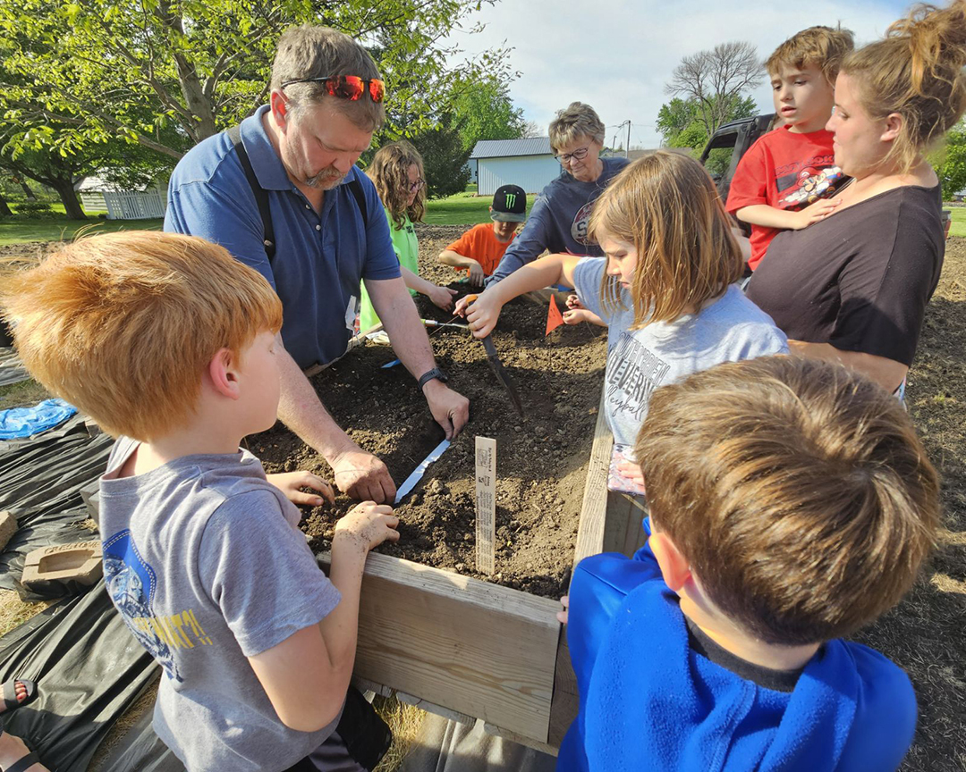 Fourteen kids, from 2 to 11 years old, waited out the rain to show up to get their hands dirty. Led by Steve and Wendy they planted peas, beans, carrots, squash, potatoes, tomatoes, onions and peppers. All items were donated from various people, but most came from the Kochs. There will be another planned get together to care for the garden on Wednesday after the South O’Brien final early-out. A schedule of “kid care” is expected to follow so kids and parents can be ready to pull weeds, water the garden and befpre you know it, harvest the fruit of their work. The project will continue throughout the summer. The kids who show up and help care for the garden will get to share the produce from their effort.