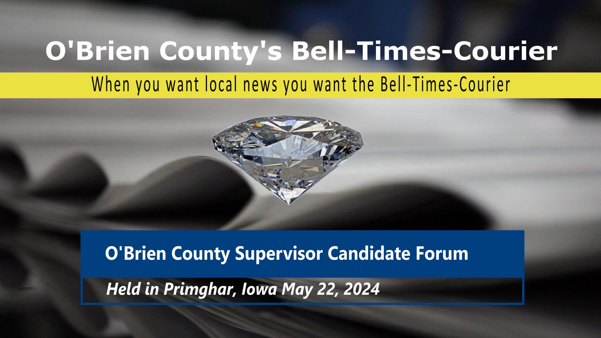 O’Brien County Supervisor Candidate Forum belltimescourier.com Posted on May 24, 2024 by richard radtkeMay 24, 2024 Held at the Primghar Community Building, May 22, 2024 in Primghar Iowa.