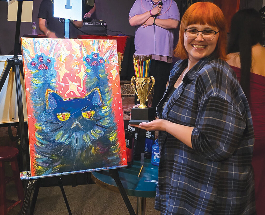 “Just paint cats” turned out to be very good advice. Crystal won a trophy, $250 cash and bragging rights.