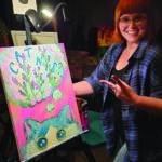 Crystal competed in 3 rounds. Her first prompt on May 25 was “loud.” In keeping with the advise of her brother, Kelly, she stayed with her cherished pets, cats. Kelly’s advice? “Whatever you do, just paint cats.” So she painted Chunky, one of her inside cats. She said, “Chunky is very loud when he is hungry.” He fit the bill and the painting won.