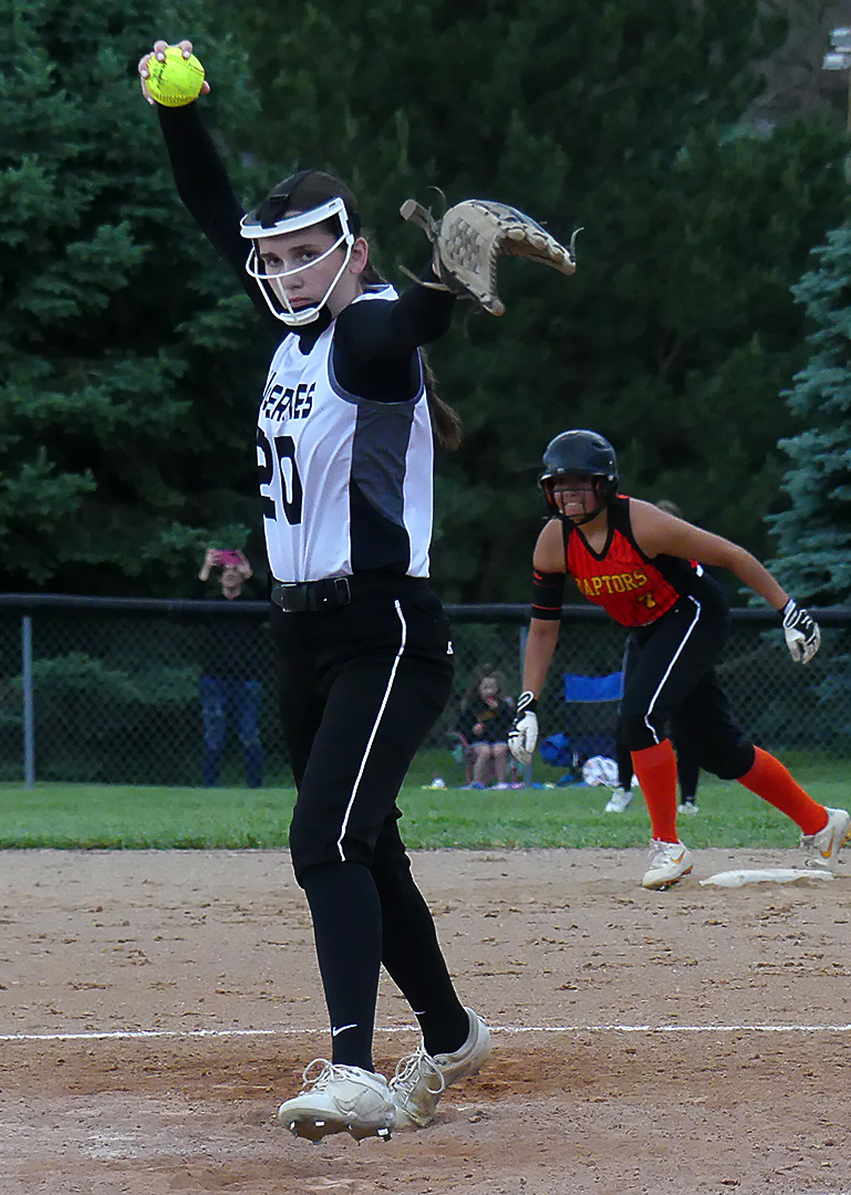 The Raptors from Ridge View were up 4-0 through three innings of play June 4 at Galva when South O’Brien finally got the bats going. In the top of the fourth with one out Ashlynn Gunnerson, Tawni Wulf and Alli Griebel hit three singles in a row. Griebel had an RBI on her hit and the other two runs came in on wild pitches to cut the lead to 4-3. Neither team scored in the fifth.