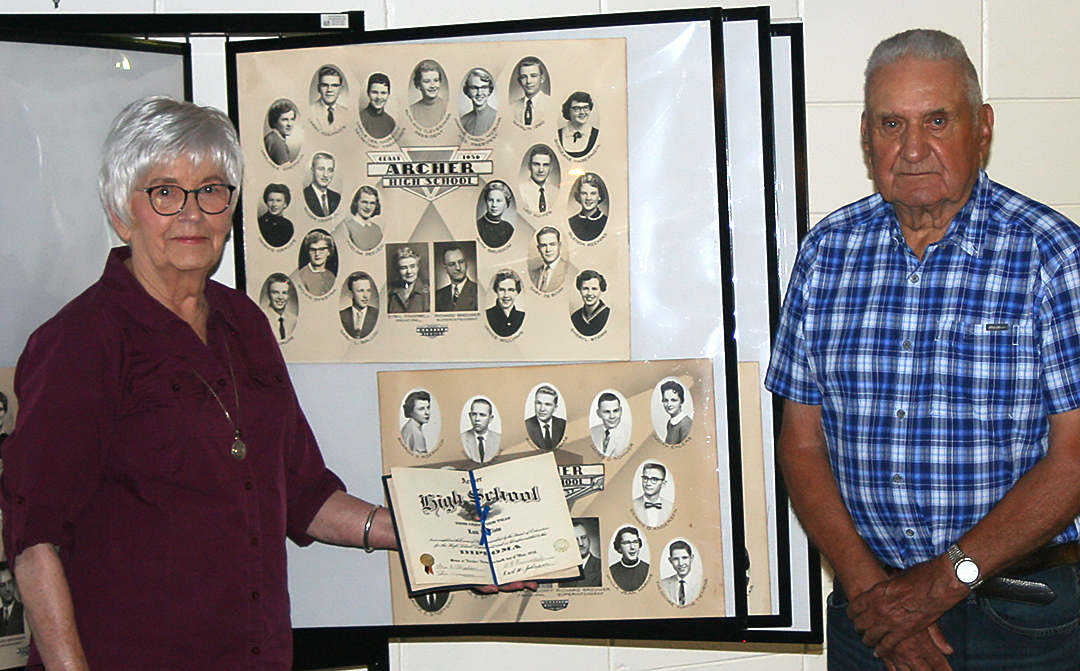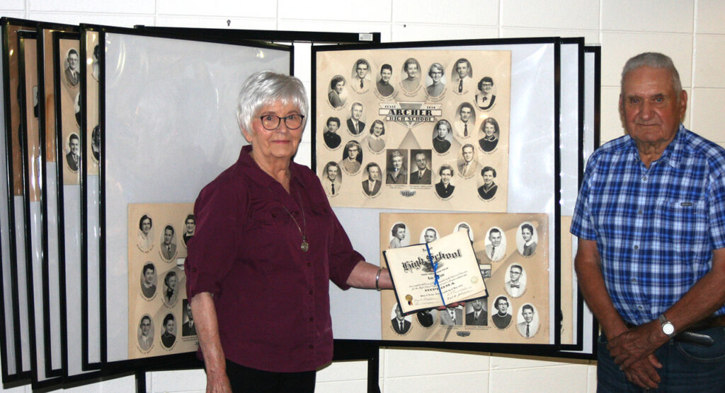 Recently the City of Archer, through the effort of Carol and Dudley McDowell received a grant from O’Brien County Community Foundation to purchase a display for all of the Archer High School and Archer Consolidated School senior pictures. Six years of graduating classes do not have pictures. Five of those years span from 1927 through 1930. Carol and Dudley made name cards of those graduating classes for the display. Married names of the ladies are included where known. Lois Clow became Lois Clow Bolan on the display.