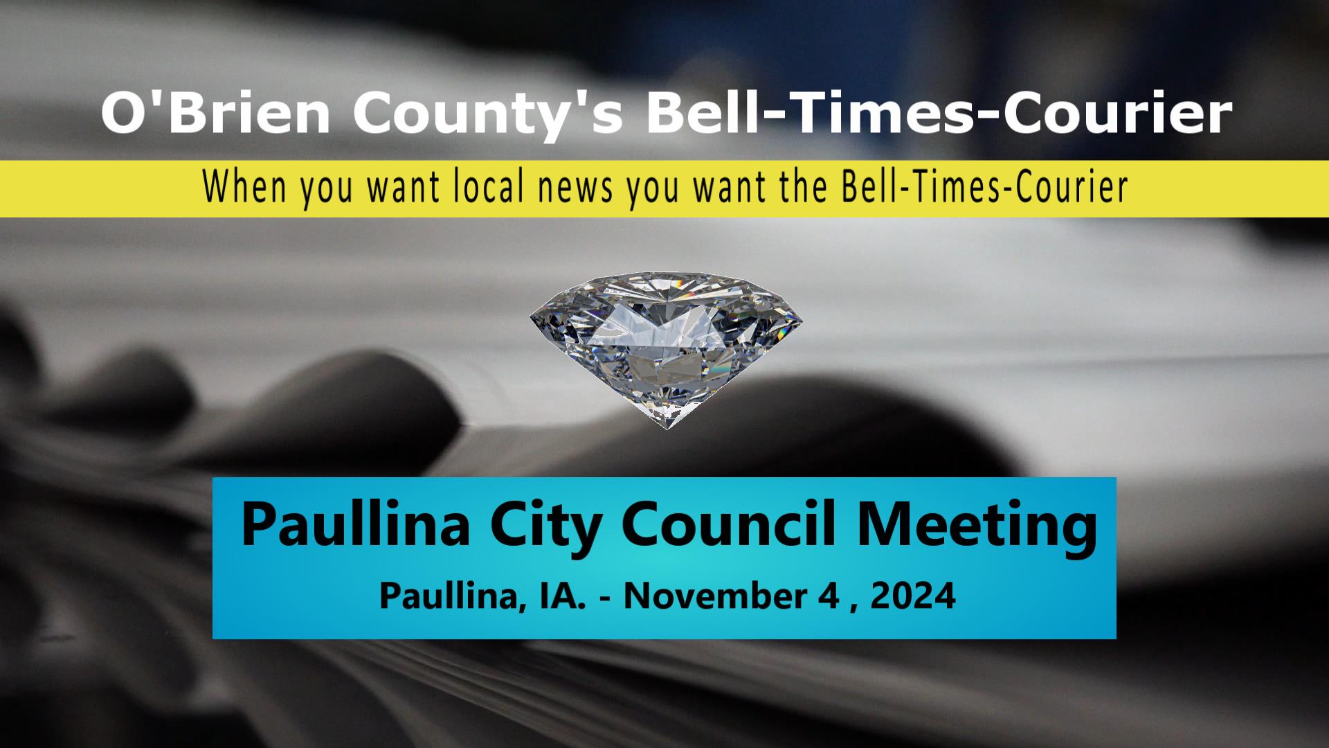 Paullina City Council Meeting – November 4, 2024 belltimescourier.com Posted on November 10, 2024 by richard radtkeNovember 10, 2024 Paullina City Council Meeting Video – November 4, 2024