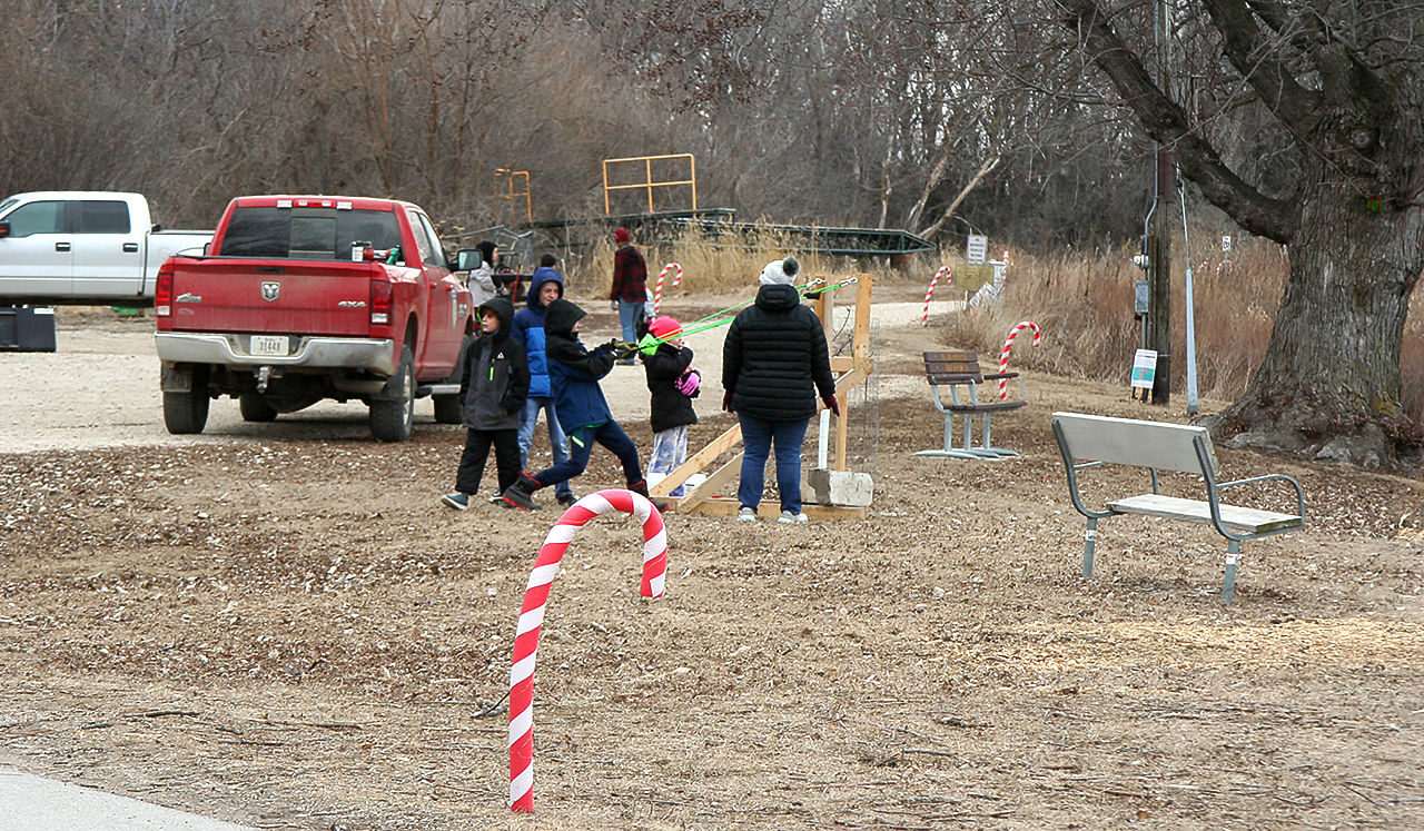 Saturday was cold. And a typical winter funderland day except the snow was missing. But the fun was still at Mill Creek Park near Paullina. Ice fishing in the frozen Mill Creek Lake, the giant sling shot, usually used for snowballs, and a supply of fat-tired bikes to ride the trails. Crafts were waiting for cold fun lovers to come inside and create the tallest snowman with 3 sheets of paper, popcorn and hot chocolate. The candy cane walk kept them looking for the characters.
