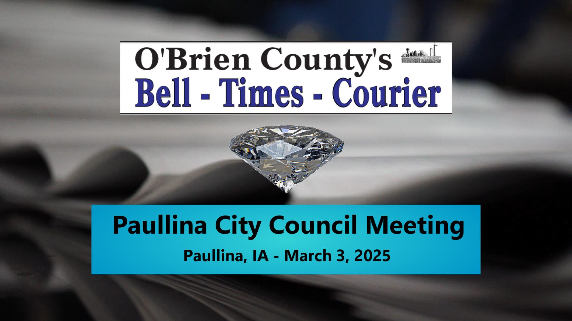 Paullina City Council Meeting – March 3, 2025 belltimescourier.com Posted on March 8, 2025 by StaffMarch 8, 2025 Video of the Paullina City Council meeting – March 3, 2025