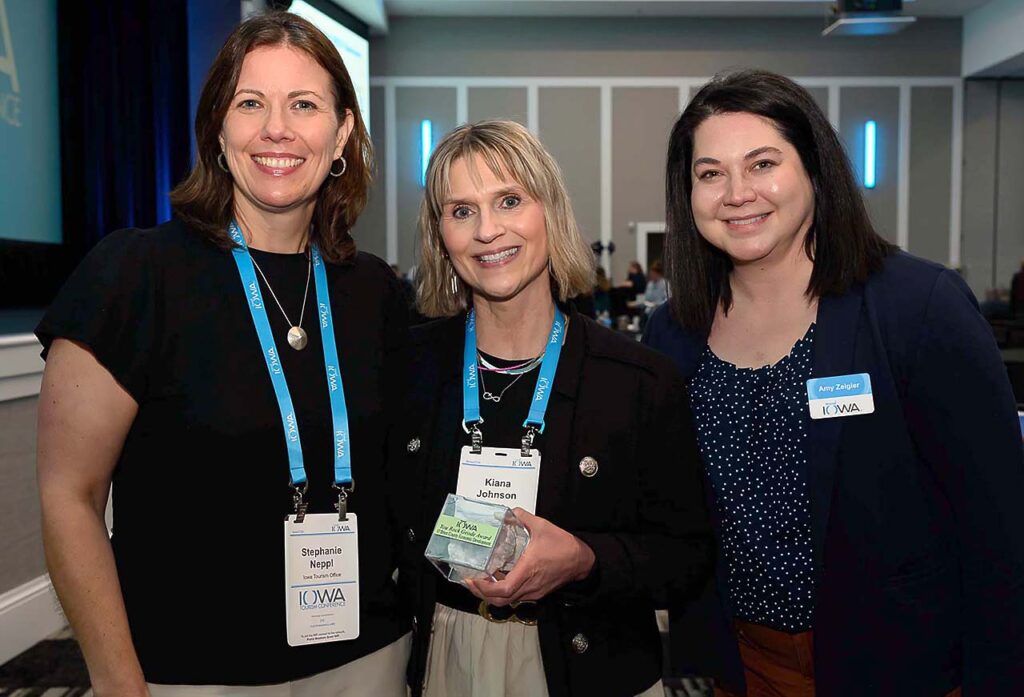 When presenting the award, Stephanie Neppl said, “Kiana Johnson, executive director of the O’Brien County Economic Development Corporation, has shown exceptional leadership in driving economic growth and tourism in a rural part of Iowa. Under her guidance, O’Brien County saw the highest visitor spending increase by percentage in the state. She has also connected tourism with talent attraction through initiatives like Career Day and industry panels.
