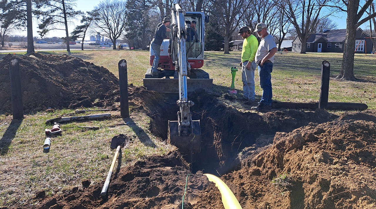 Phase I (of III) of the Mill Creek Park sewer improvement project began in April as mild weather gave Cleveringa Excavating a window into advancing the project. Trenching and installation of 3-inch sewer lines is done, including boring under the entry driveway readying connection for future phases of the project. Engineering for this upgrade was done by DGR. Phase I will connect “The Lodge,” the shop and the office to Paullina’s sewer system. According to O’Brien County Conservation Director Mark Wilson, a year-round bathroom will be constructed and connected to this sewer system also. Lift stations and connections to the buildings remain for this year’s part of the project.