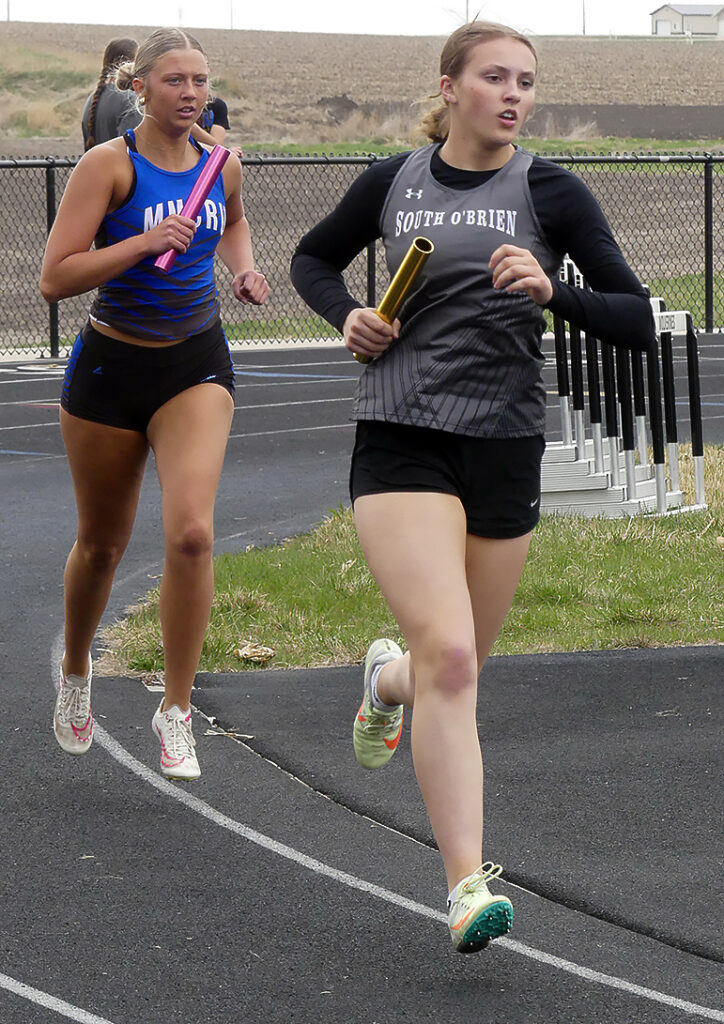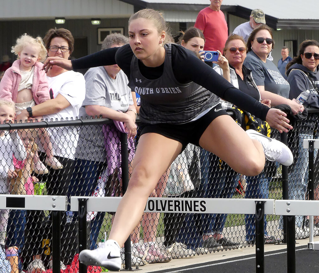The Wolverine track and field girls entertained four other area teams at the South O’Brien Mid-Season Meet held April 17 at Paullina. The host team scored 124 points to finish second. Sioux Central easily won the team title with 208 points.