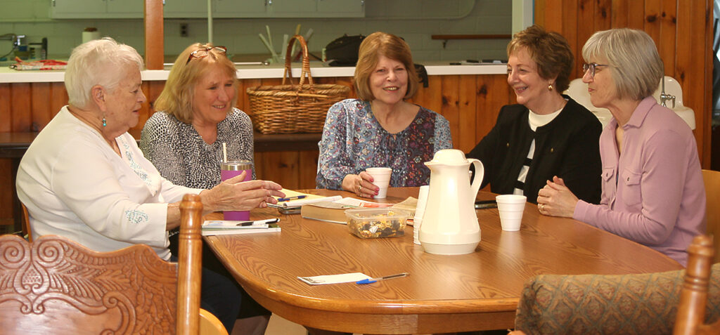 Jean Gnade began participating as a young mother. Her sister in law, Carol Platt, directed her to the coffees and even volunteered to babysit while Jean attended. Other young mothers who particpated as they could are Esther Koehlmoos, Janet Lundquist, Nelda Werkmeister and Carol Platt. Each have been involved for more than 20 years with Jean now serving as Coordinator. She finds the Guides, gets them trained and watches as Jesus’ word is given for the purpose of changing lives.