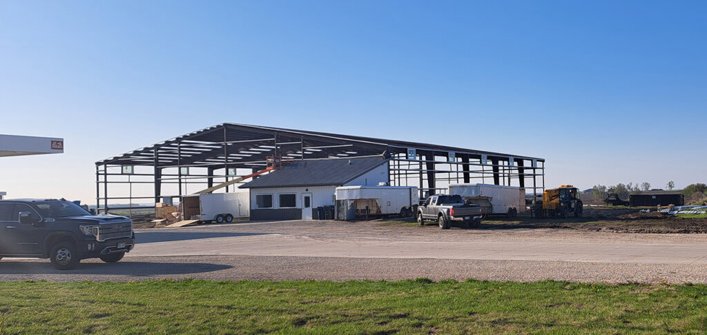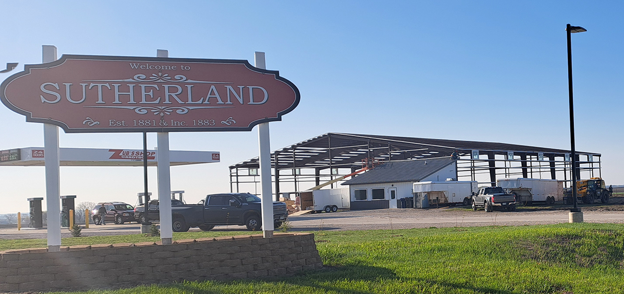 They are at it again. South of the Sutherland card-trol they are building a 120’ x 120’ garage with 20’ sidewalls. The newest location will feature 5 doors on the south side and 1 drive-through on the north. The south door will be 18’ and allowing for semis to pull straight through.