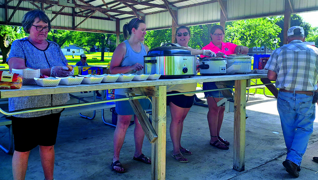 Commercial Club members set up a serving line for their guests. A nice crowd was out for dinner and treats, homemade ice cream and homemade treats. Kids enjoyed the park. The weather was on the warm side June 19, but it was really quite nice.