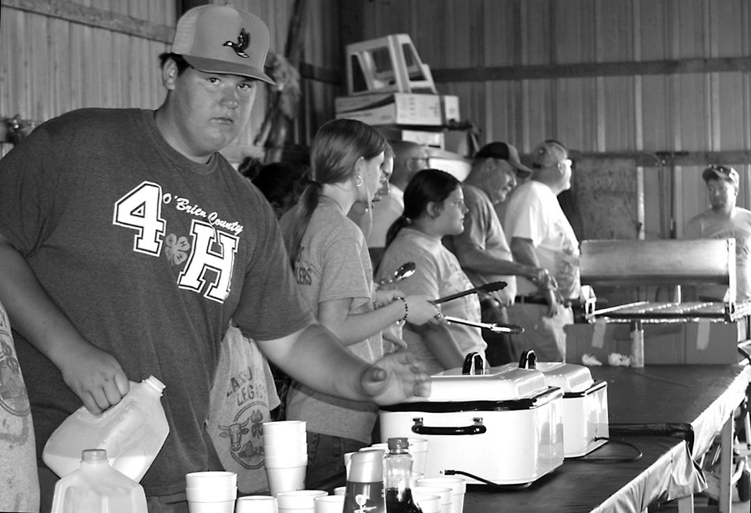 Although the organizations providing the food and service have changed from Flying Club to Ambulance, Fire and more, the event has been in the capable hands of two neighboring 4H clubs in recent years, The Caledonia Ramblers and G&W Feeders. Together, the two clubs serve generally the southern part of O’Brien County 4H.