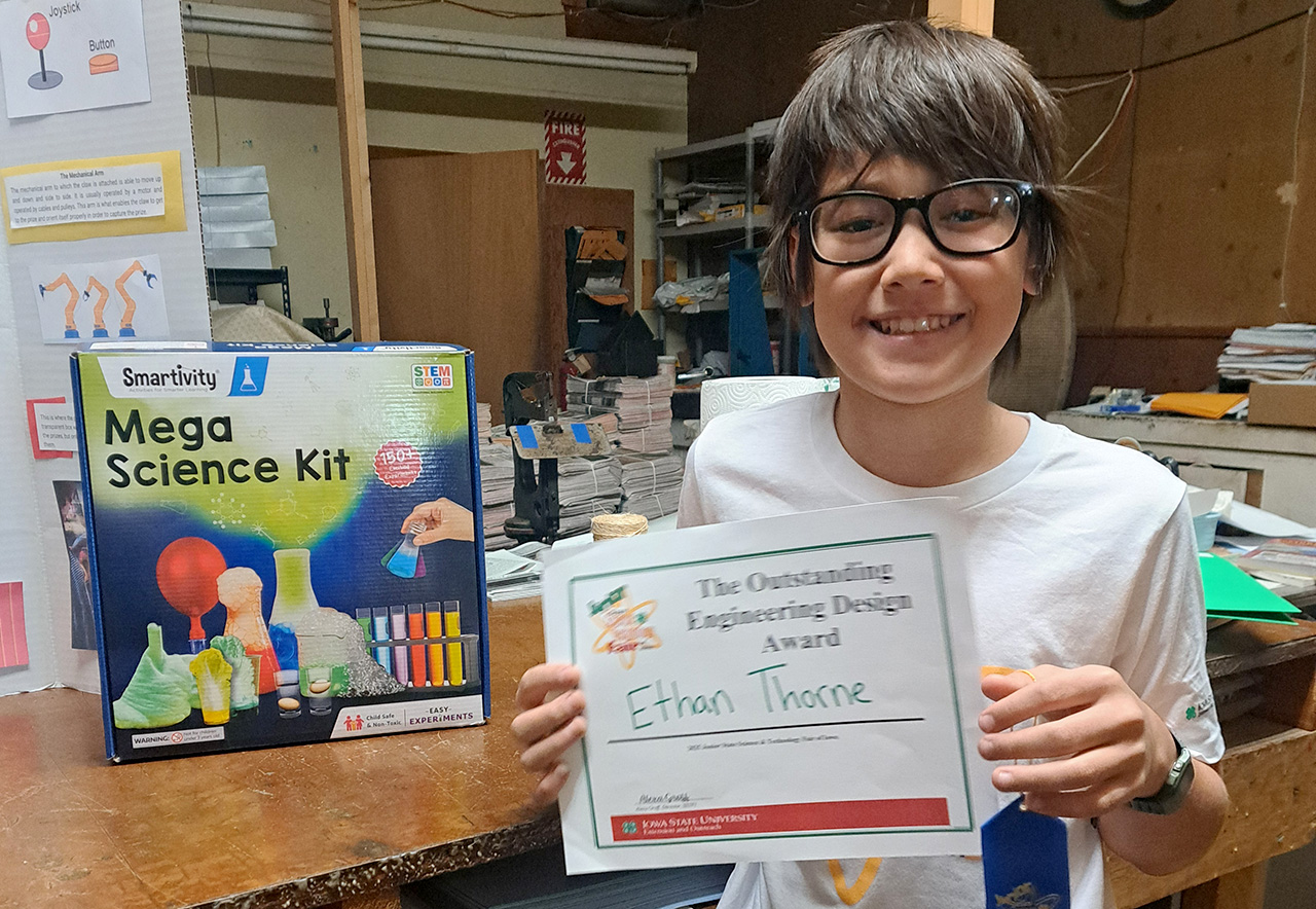 Ethan thinks of himself as his own teacher, but really Mom, Whitney, does all the teaching, guiding and planning and arranging. She found the SSTFI and entered Ethan and his claw machine! At first, he was not excited about it. He had taken his claw machine to school last year, but kids looked and touched, and it broke.
