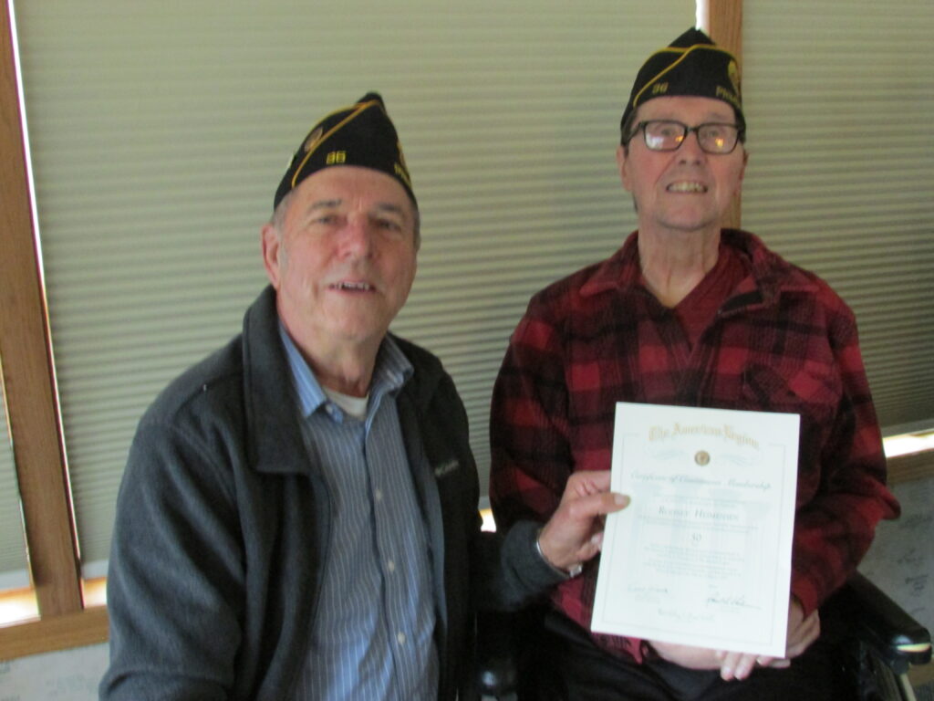 Rodney Heimensen was recently presented a certificate for 50 continuous years of membership in the American Legion. Rodney served his country in the U.S. Army from 1966 to 1968 with one tour of duty in Vietnam as a radio operator where he lived in a tent. Rodney and his wife, Myrna, live in Primghar.